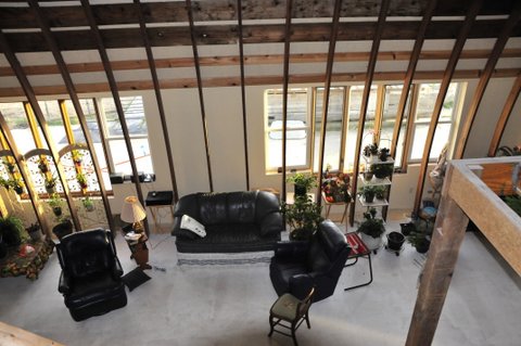 The three inches of closed-cell polyurethane foam used to encapsulate the Barome project yields a maximum R-value of about 21, which is not outstanding given the total area of 9,000 sq ft. Most of their energy savings is due to the GARN® method of wood heating–hot, fast, and smokeless using thermal storage and no smoldering “idle” combustion condition–which we at GARN® maintain is the only way to burn wood efficiently and cleanly.